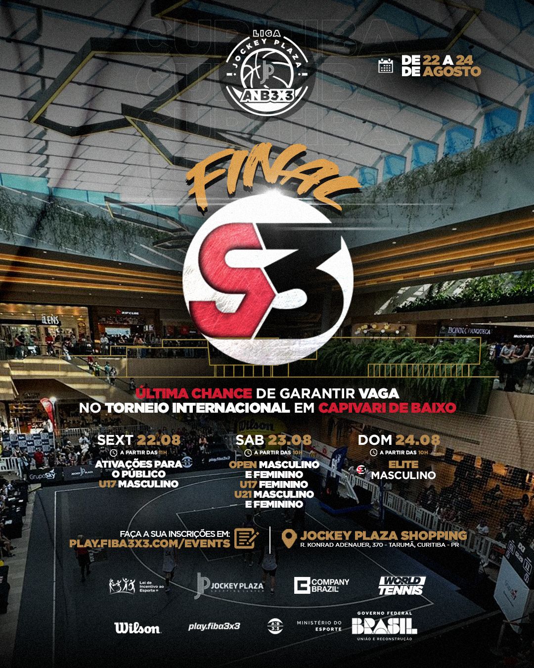 “A final da Super Liga 3×3 é sempre um momento muito especial, pois reúne os melhores times e atletas do país em um clima de pura emoção. Este ano teremos uma disputa ainda mais acirrada, com pontuação dobrada e vaga internacional em jogo. Estamos muito felizes em voltar a Curitiba e contar novamente com o Jockey Plaza Shopping como parceiro para oferecer uma experiência incrível ao público”, destaca Alex Negret, presidente da ANB 3×3.